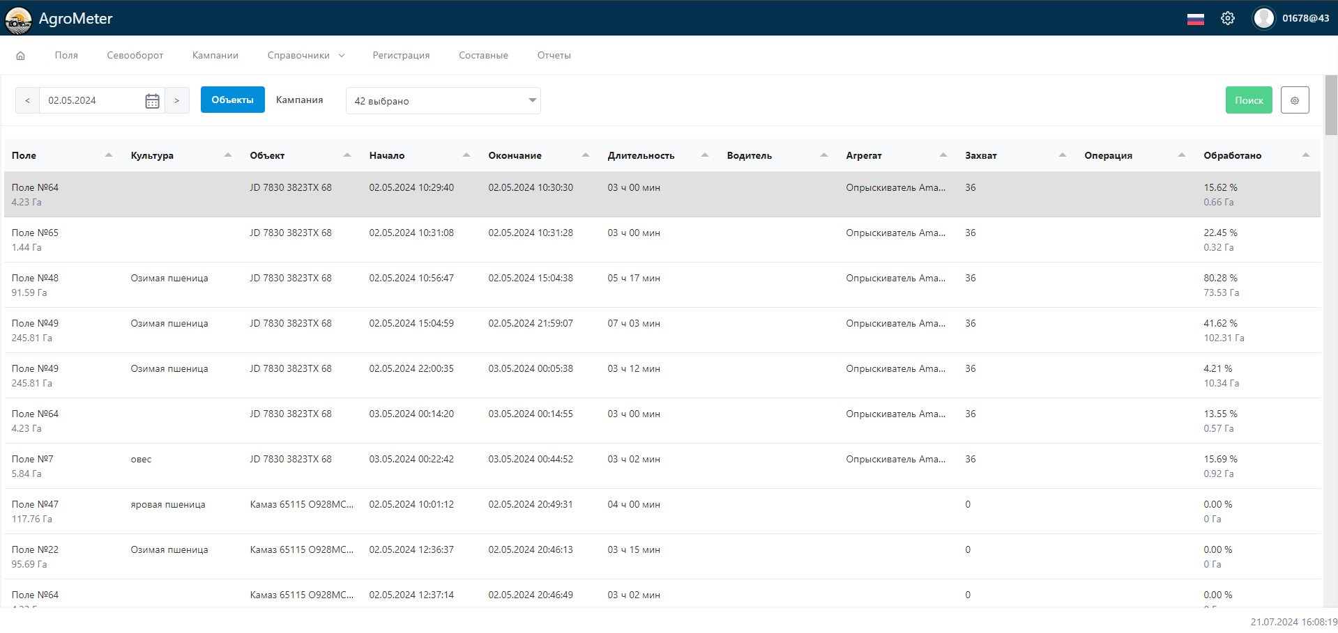 Только зарегистрированные обработки сохраняются в базе данных Агрометр и показываются в отчетах. Рекомендуется регистрировать обработки регулярно, например, в конце каждого рабочего дня.