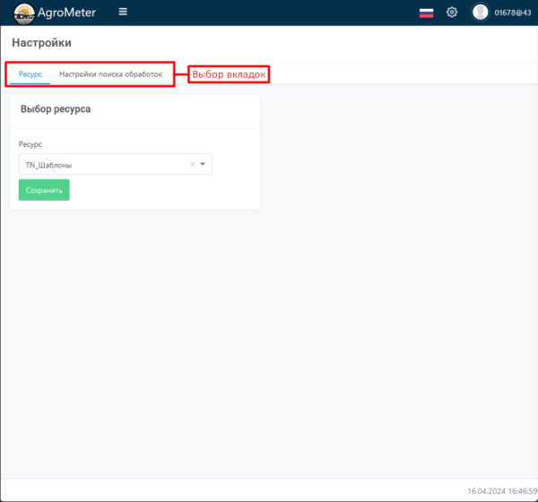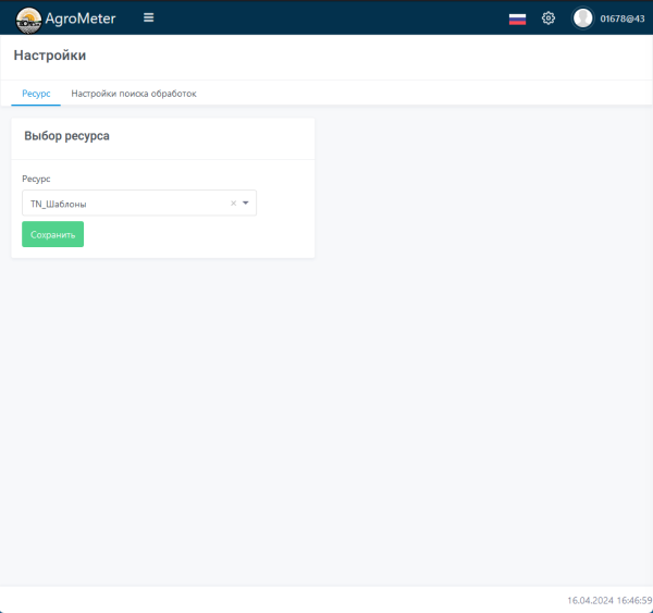 | Ресурс | Выбор ресурса, если пользователю доступно более одного. Именно в этом ресурсе должны находиться водители, прицепы и геозоны, которые вы хотите использовать в Агрометр. |